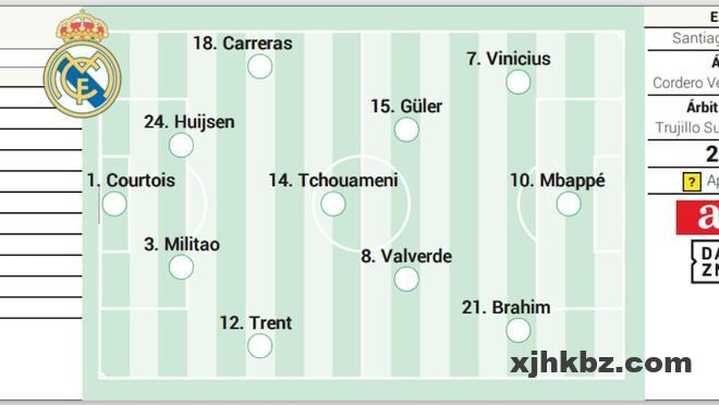 北京时间8月20日3:00,西甲联赛第1轮,皇马将在伯纳乌迎战奥萨苏纳。赛前,《阿斯报》对本场比赛皇马的首发阵容进行了预测。