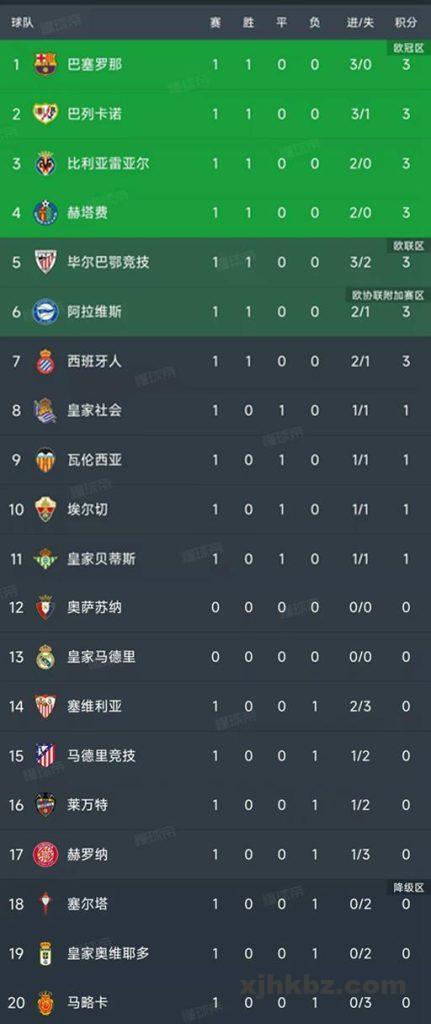 北京时间8月19日,新赛季的西甲联赛第一轮已经结束了9场比赛,除了皇马和奥萨苏纳的比赛还没有进行,我们一起看看最新的积分榜变动!