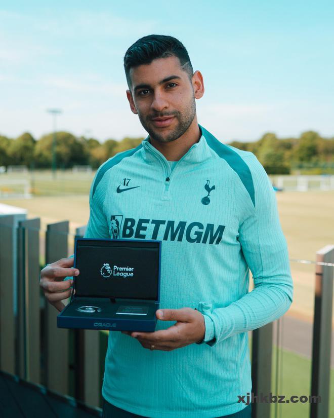 北京时间5月13日,热刺官方晒出了罗梅罗领取英超100场里程碑纪念品的照片。