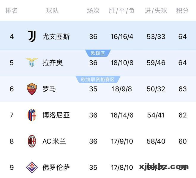 直播吧05月11日讯 意甲第36轮,尤文遭拉齐奥1-1绝平,两队同积64分,意甲争四形势依旧扑朔迷离。 目前意 […]