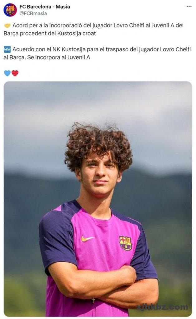 官方:18岁克罗地亚中场切尔菲加盟巴萨青训梯队