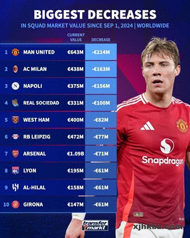 直播吧6月20日讯 德国转会市场列出本赛季球队身价下降排名,曼联下降2.14亿欧元断层居首,米兰、那不勒斯二三 […]