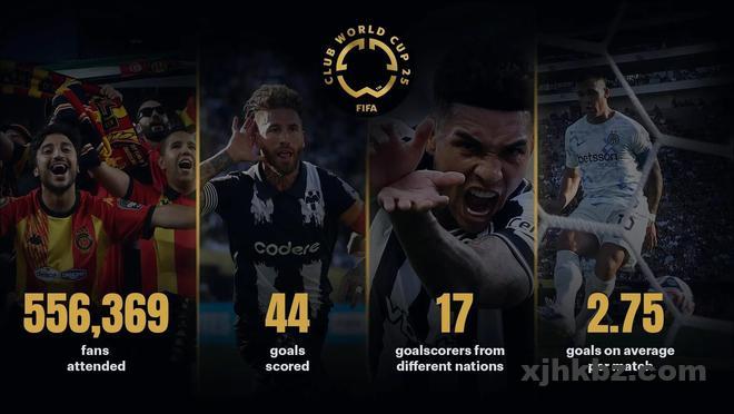 国际足联官方发布了2025年世俱杯小组赛第一轮的各项数据,小组赛首轮16场比赛一共产生了44球,场均2.75球,阿根廷球员打入8球为最多。