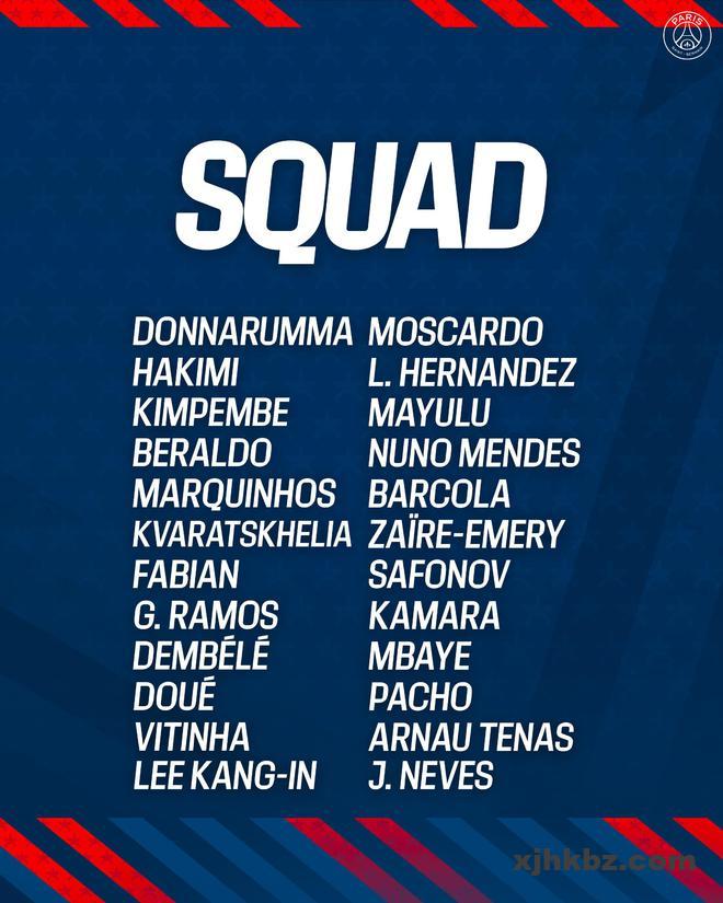 巴黎圣日耳曼公布了他们参加即将举行的世俱杯的大名单,奥斯曼-登贝莱、杜埃、维蒂尼亚领衔。